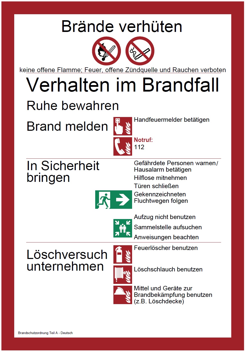 Brandschutzordnungen werden gemäß den Anforderungen der DIN 14096 erstellt. Sie unterteilen sich grundsätzlich in die