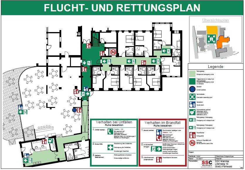 Flucht- und Rettungspläne dienen in allen öffentlich zugänglichen Gebäuden zur Orientierung der gebäudefremden Personen im Schadensfall. Sie ermöglichen eine schnelle Entfluchtung und sollen das Auffinden evtl. benötigter Brandschutzinfrastruktur (Feuerlöscher, Handfeuermelder, usw.) erleichtern. Flucht- und Rettungspläne werden gemäß den Anforderungen der DIN ISO 23601 erstellt.
